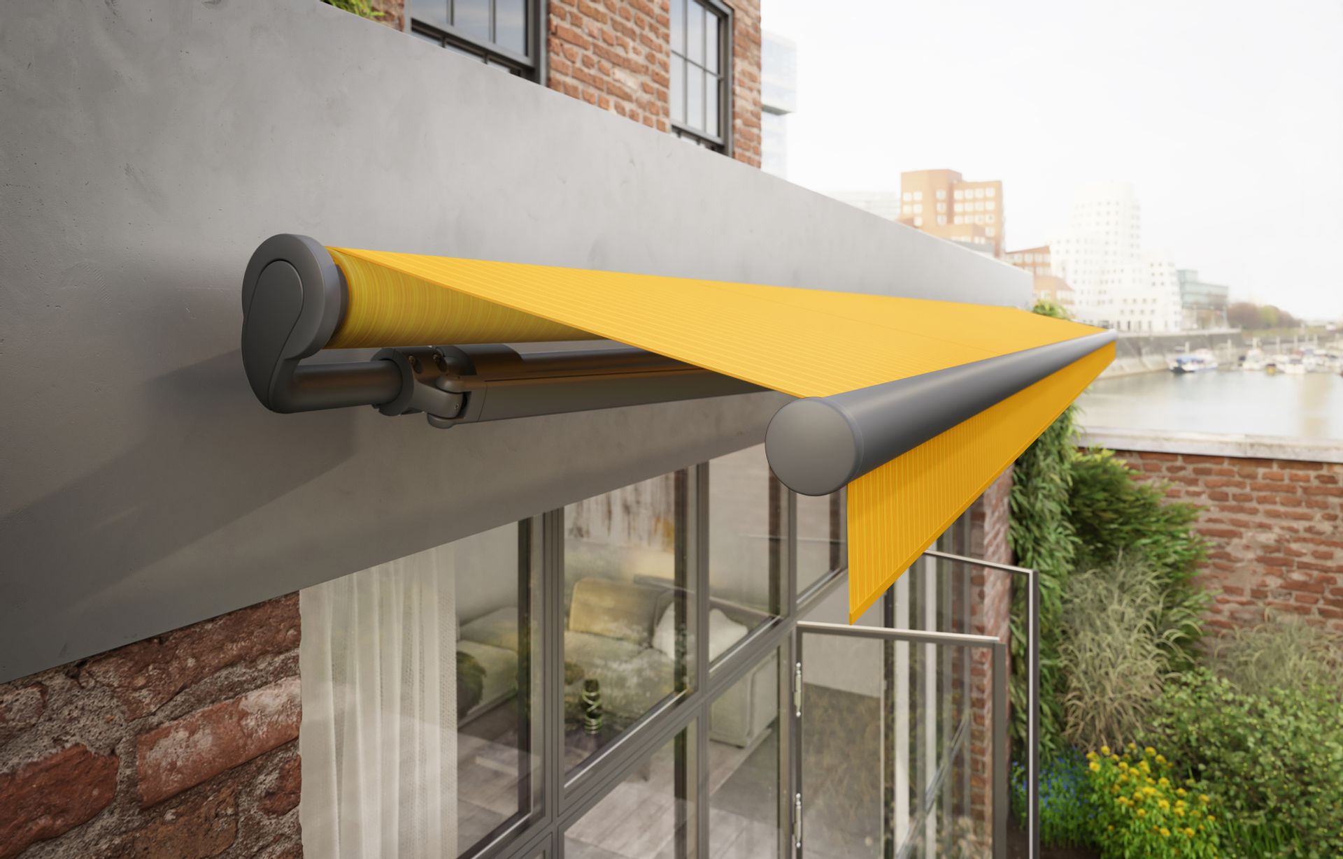 Ihr fließendes Design wirkt elegant und zeitlos. Durch ihre stabile Tragrohrkonstruktion und die Möglichkeit, bis zu drei Markisen nebeneinander verbinden zu können, kann sie selbst große Flächen mühelos beschatten. Lassen Sie sich für so viel Offenheit mit guter Stimmung belohnen.